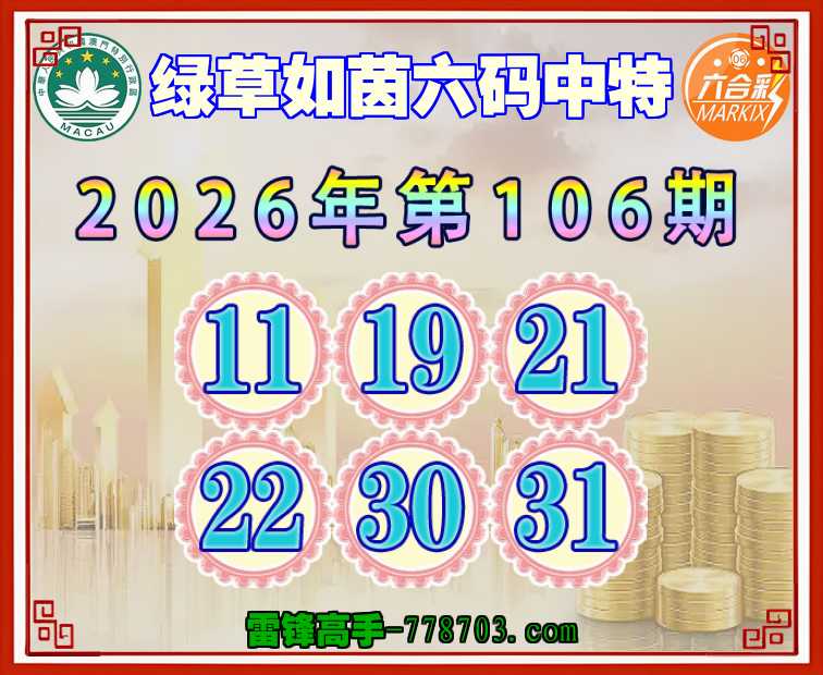 106期:【绿草如茵】 六码中特【11.19.21.22.30.31】开:00准