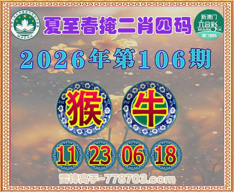 106期:《夏至春掩》 二肖四码【猴牛】【11.23.06.18】开:00准