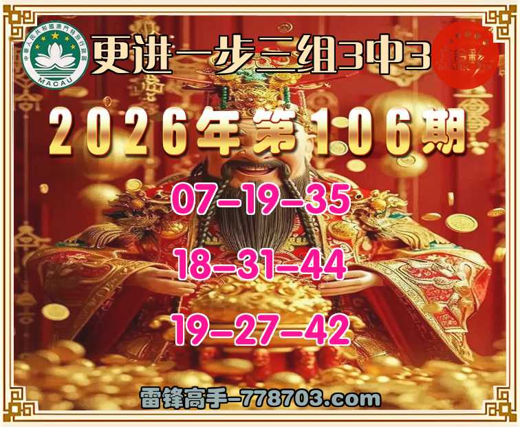 主题: 106期:澳门雷锋【更进一步】【三组3中3】彩民赢彩必看✔
