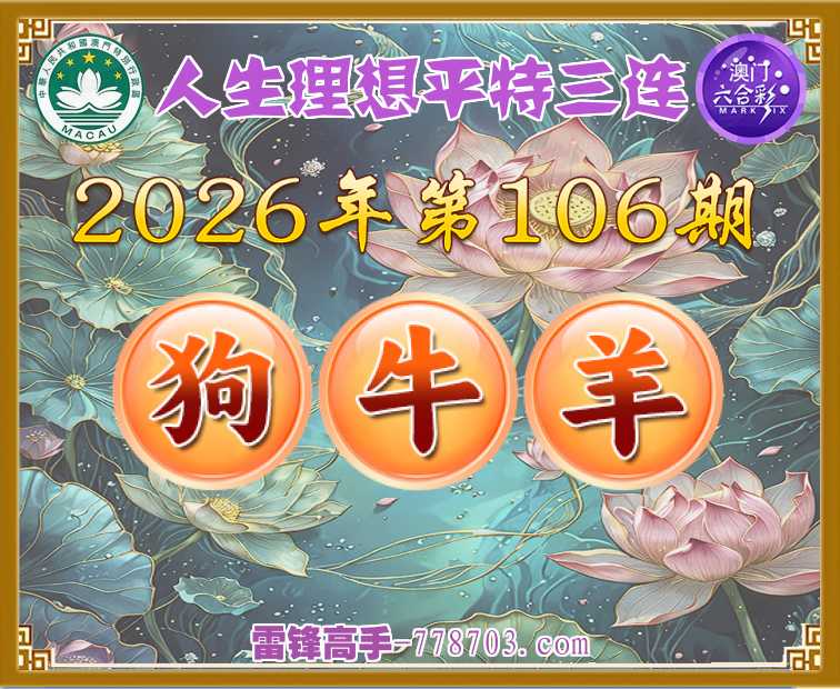 主题: 106期:澳门雷锋【人生理想】【平特三连】彩民赢彩必看✔